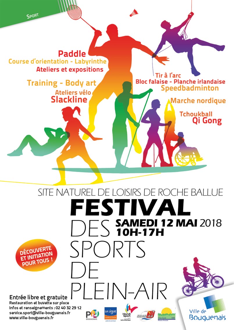 Le festival des sports de plein air organisé par la ville aura lieu le samedi 12 mai 2018 sur le site naturel de loisirs de Roche Ballue.